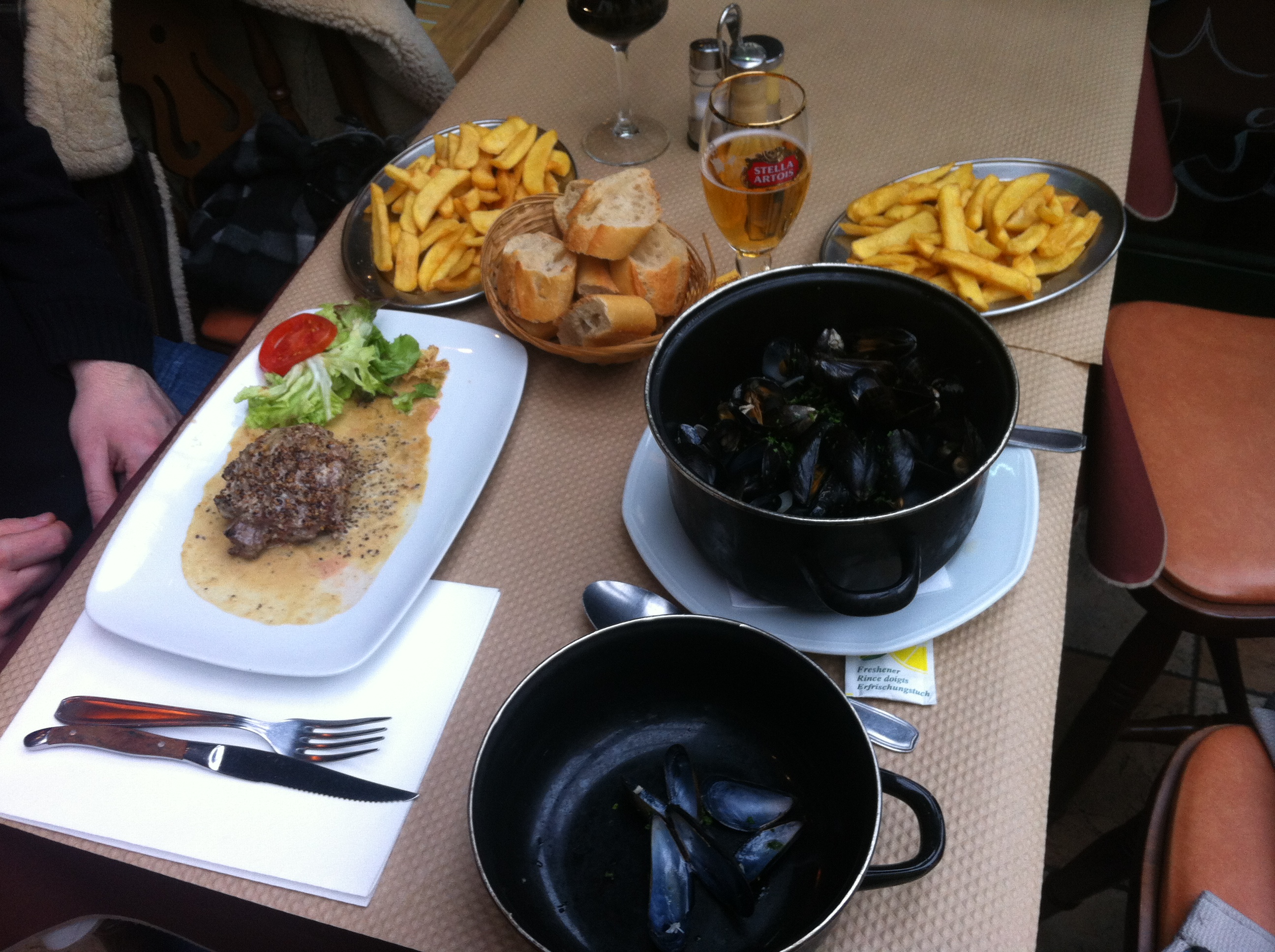 Little cornices and balconies on all the buildings: tick. Moules-frites lunch with a Stella Artois: also tick. Espresso and crêpes: Erm, Yum.