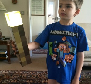 For the birthday boy we got this minecraft t-shirt to wear from Argos (but cheaper, through hotdealsuk) and the torches came I think from Amazon, from his Aunties Tara and Jen.