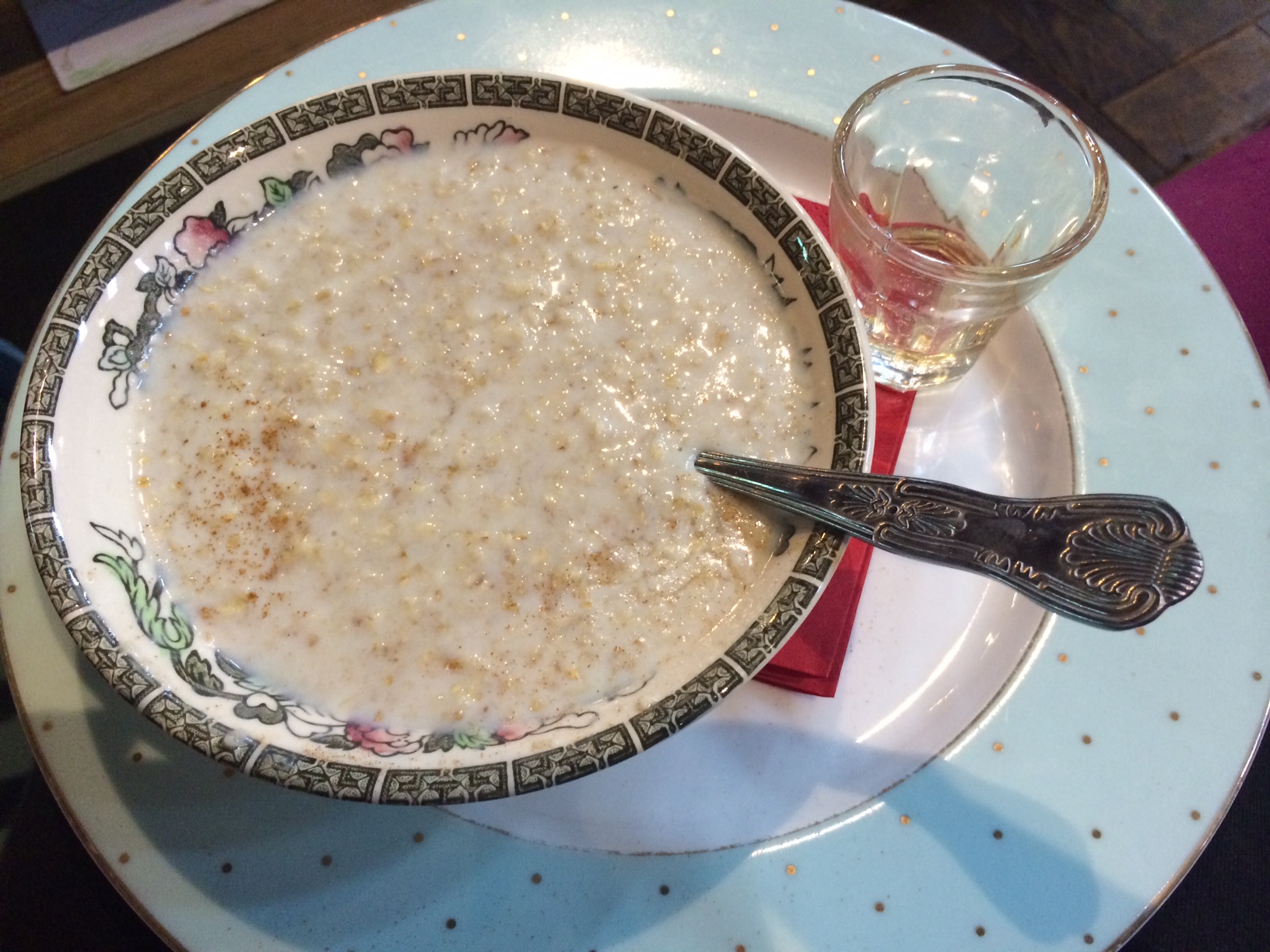 I really wanted to make the most of this last chilled weekend, though before the madness starts, so we had a lie-in on Saturday and I took them to the amazing Sheriff Centre Hullaballoo soft-play in West Hampstead. It’s the most amazing place, with soft play for under 2s (£2) and over 2s (£4). They get to stay in for ages, if it’s not busy I don’t think they ever kick you out! It is a huge converted church (actually still used in part as a church) but with a post office inside, sofas, free books and games to borrow, so you can sit and enjoy yourself while still keeping an eye on the kids and the café not only does coffee and nice food but also WINE and beer!! Plus the people there are lovely. In other words, it’s just heaven to a knackered parent like me. I would literally live there all the time if it were possible. They serve their tea in proper vintage, mismatched china and before my wine I had lovely porridge with cinnamon and honey.